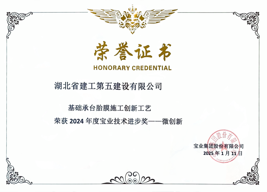 • 湖北省建工第五建設有限公司榮獲寶業(yè)集團2024年度寶業(yè)技術進步獎微創(chuàng)新獎